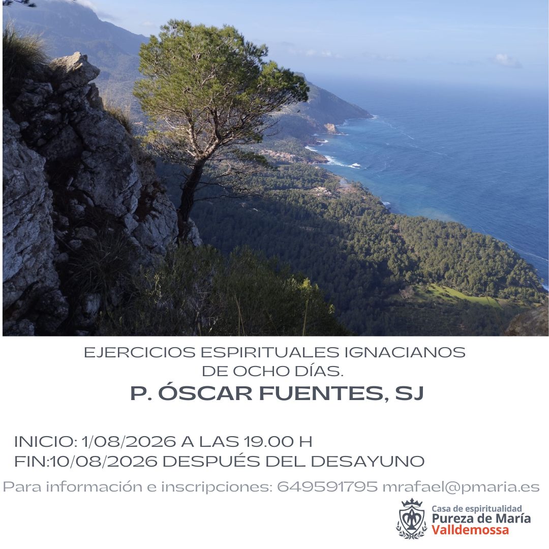 AGOSTO: Ejercicios Espirituales de 8 días. Del 1 de agosto a las 19.00 h hasta el 10 de agosto después del desayuno. P. Óscar Fuentes, jesuita.