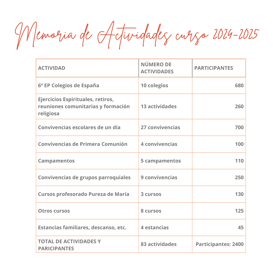 Pureza de María en Valldemossa es un espacio concebido para la realización de actividades educativas, formativas, pastorales, espirituales o culturales. Es un lugar ideal para descansar, disfrutar de la naturaleza y de las bellezas de un pueblo pintoresco, formarse, reflexionar, orar y celebrar, reunirse y trabajar en grupo.